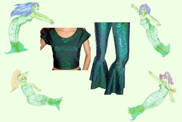 This costume will transform any child into Leila, Vanna, Briel, or Maisy! The stunning top and flared pants create the scales and fins of the Mer-Girls. Request the top in green to look just like the sisters!